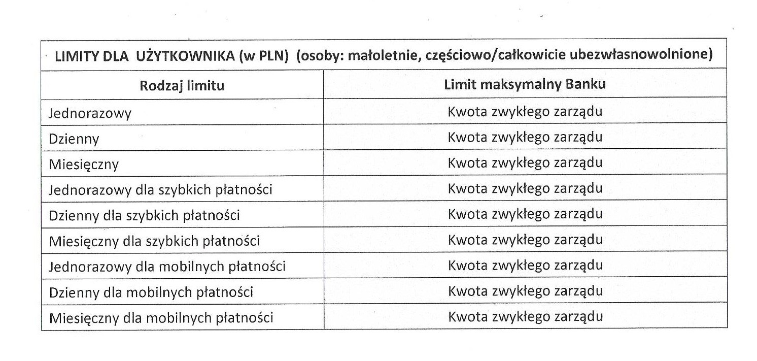 Limit indywidualny – limit ustalany przez Posiadacza rachunku, limit nie może być wyższy niż limit maksymalny Banku.